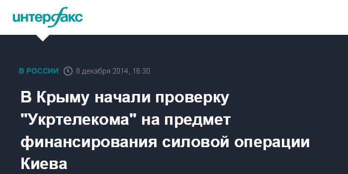 Москва. 8 декабря. INTERFAX.RU - Сотрудники ФСБ и прокуратуры Крыма проводят проверку деятельности компании "Укртелеком" украинского бизнесмена Рината Ахметова в рамках расследования уголовного дела о перечислении средств на финансирование силовой операции Киева на востоке Украины, сообщил глава республики Сергей Аксенов.