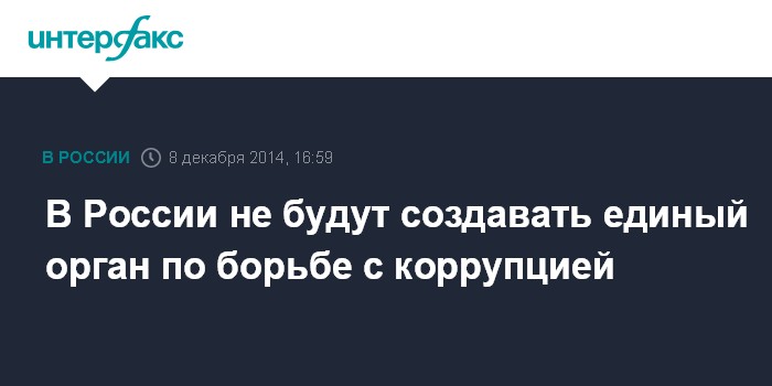 Москва. 8 декабря. INTERFAX.RU - В России не планируют создавать единый госорган в сфере борьбы с коррупцией, заявил журналистам глава администрации президента РФ Сергей Иванов.
