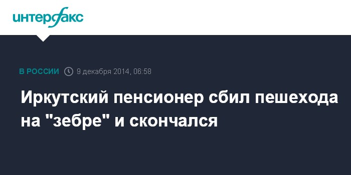 Иркутский пенсионер сбил пешехода на "зебре" и скончался