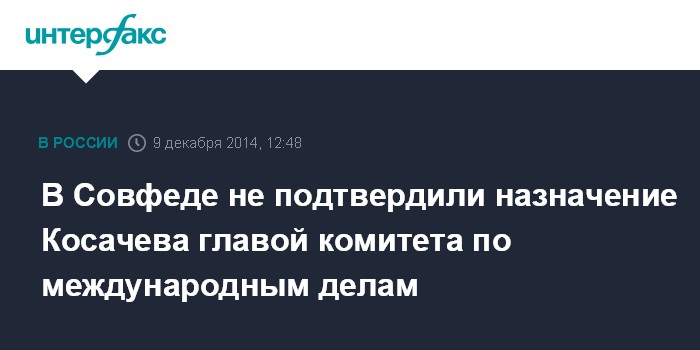 Ранее некоторые СМИ сообщали, что на следующей неделе комитет по международным делам Совета Федерации получит нового председателя спустя более чем 100 дней после ухода с этой должности Михаила Маргелова, который стал вице-президентом "Транснефти". На его место, по версии изданий, придет Косачев.