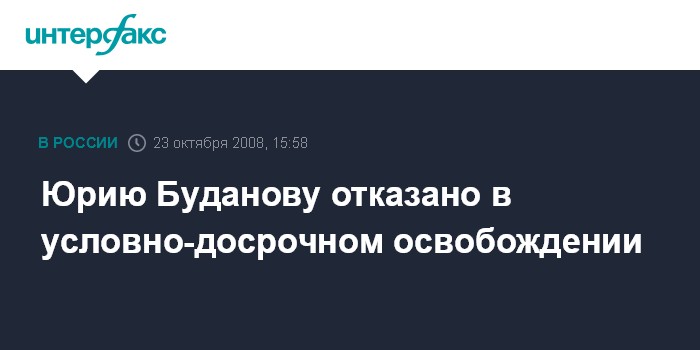 Москва. 23 октября. INTERFAX.RU - Суд города Димитровграда (Ульяновская область) отклонил ходатайство об условно-досрочном освобождении бывшего полковника Юрия Буданова, сообщили в четверг агентству "Интерфакс-Поволжье" в пресс-службе регионального управления исполнения наказаний.