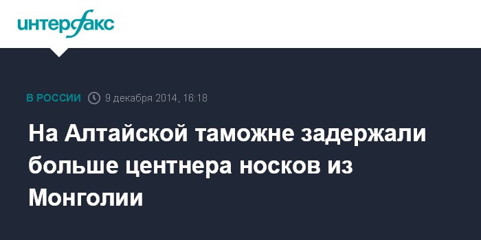 Москва. 9 декабря. INTERFAX.RU - Сотрудники Ташантинского таможенного поста Алтайской таможни выявили два случая незаконного провоза коммерческой партии носков из Монголии, сообщает пресс-служба Сибирского таможенного управления.