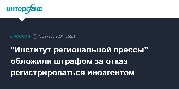 "Институт региональной прессы" обложили штрафом за отказ регистрироваться иноагентом