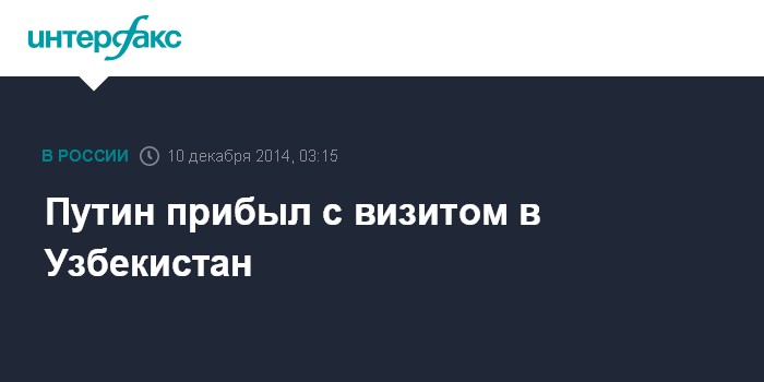 Москва. 10 декабря. INTERFAX.RU - Президент РФ Владимир Путин прибыл с однодневным официальным визитом в Ташкент, в ходе которого проведет переговоры с узбекским коллегой Исламом Каримовым.