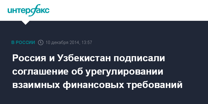 Москва. 10 декабря. INTERFAX.RU - Россия и Узбекистан подписали соглашение об урегулировании взаимных финансовых требований и обязательств, передал корреспондент "Интерфакса" с церемонии подписания.