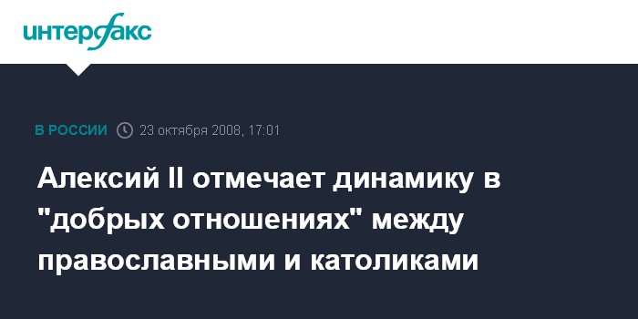 Москва. 23 октября. INTERFAX.RU - Патриарх Московский и всея Руси Алексий II заявил о положительной динамике во взаимоотношениях Русской православной и Римско-католической церквей.