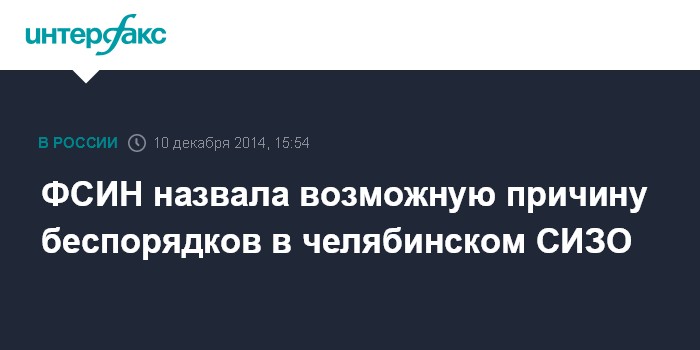ФСИН назвала возможную причину беспорядков в челябинском СИЗО