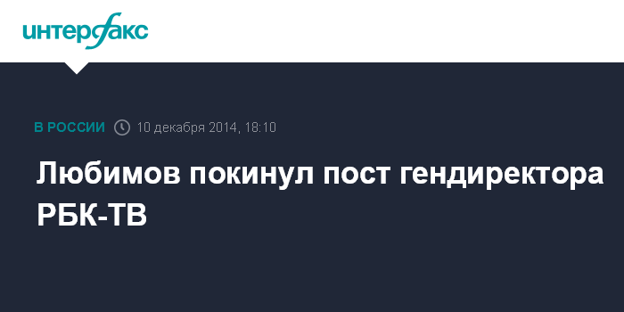 4 апреля Любимов сообщил "Интерфаксу", что принял решение покинуть пост гендиректора РБК-ТВ. "После Паралимпиады я потихоньку начал передавать все дела своему коллеге, с которым проработал много лет, Глебу Шагуну", - рассказал тогда Любимов.