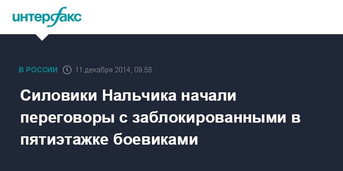 Москва. 11 декабря. INTERFAX.RU - Ориентировочно четверо бандитов заблокированы в пятиэтажном доме в Нальчике, с ними ведутся переговоры, сообщил агентству "Интерфакс-Юг" источник в правоохранительных органах.