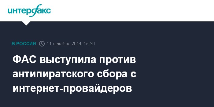 ФАС выступила против антипиратского сбора с интернет-провайдеров