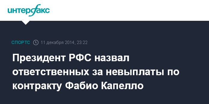 Москва. 11 декабря. INTERFAX.RU - Президент Российского футбольного союза Николай Толстых заявил корреспонденту "Интерфакса" в четверг, что ответственность за ситуацию с задержкой зарплаты тренеру сборной России Фабио Капелло ложится не только на руководство РФС, но и "другие лица".