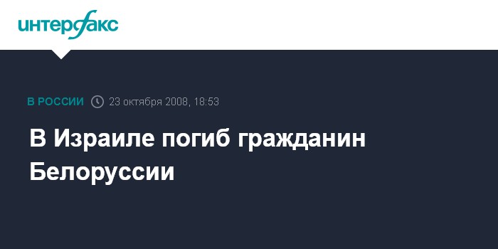 Москва. 23 октября. INTERFAX.RU - В Израиле утонул гражданин Белоруссии. Консул белорусского посольства в Израиле Сергей Палагин подтвердил агентству "Интерфакс" факт гибели гражданина Белоруссии в Израиле. В Консульском управлении МИД также подтвердили факт гибели человека, однако отказались предоставлять какие-либо подробности.