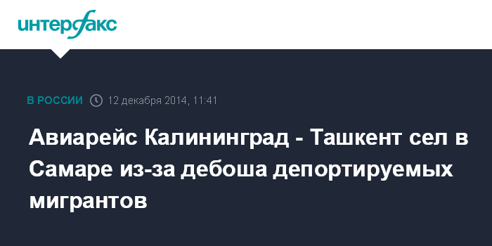 Авиарейс Калининград - Ташкент сел в Самаре из-за дебоша депортируемых мигрантов