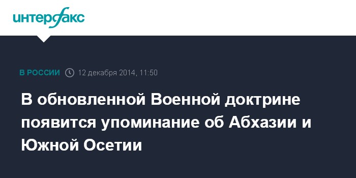 "В уточненном варианте Военной доктрине будет статья о создании единого оборонного пространства с Абхазией и с Южной Осетией как с военными союзниками Российской Федерации", - сказал собеседник агентства.