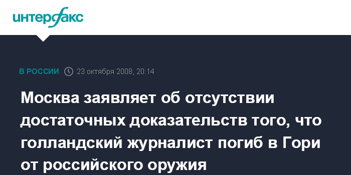 Москва заявляет об отсутствии достаточных доказательств того, что голландский журналист погиб в Гори от российского оружия