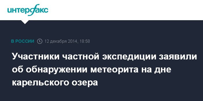 Москва. 12 декабря. INTERFAX.RU - Участники экспедиции, организованной исследовательским сообществом "Космопоиск", обнаружили ледяной метеорит на дне карельского озера Выгозеро, сообщил в пятницу на пресс-конференции руководитель организации Вадим Чернобров.