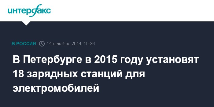 Москва. 14 декабря. INTERFAX.RU - ОАО "Ленэнерго" в 2015 году планирует установить в Петербурге 18 зарядных станций для электромобилей, сообщил "Интерфаксу" генеральный директор компании Андрей Сорочинский.