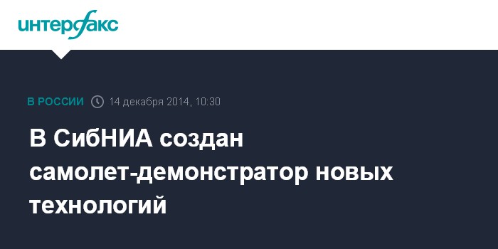 Москва. 14 декабря. INTERFAX.RU - Сибирский научно-исследовательский институт авиации имени С.А Чаплыгина" (СибНИА) создал самолет-демонстратор новых технологий в интересах развития в России малой авиации.