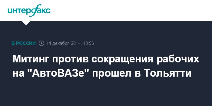Москва. 14 декабря. INTERFAX.RU - Независимый профсоюз работников ОАО "АвтоВАЗ" в воскресенье провел в Тольятти митинг с требованием прекратить массовые сокращения на предприятии и увеличить оплату труда сотрудникам.