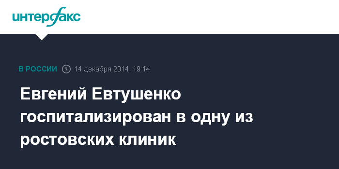 "Действительно, поэт Евгений Евтушенко сегодня утром был госпитализирован в одну из больниц Ростова-на-Дону в связи с тем, что у него ухудшилось состояние здоровья. В настоящее время врачи оценивают состояние здоровья поэта как удовлетворительное, соответствующее его возрасту", - сказала она.