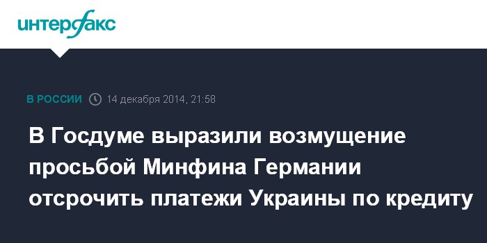 Москва. 14 декабря. INTERFAX.RU - Глава комитета Госдумы по международным делам Алексей Пушков выразил возмущение призывом министра финансов ФРГ Вольфганга Шойбле отстрочить платежи Украины по предоставленному Россией кредиту в $3 миллиарда.