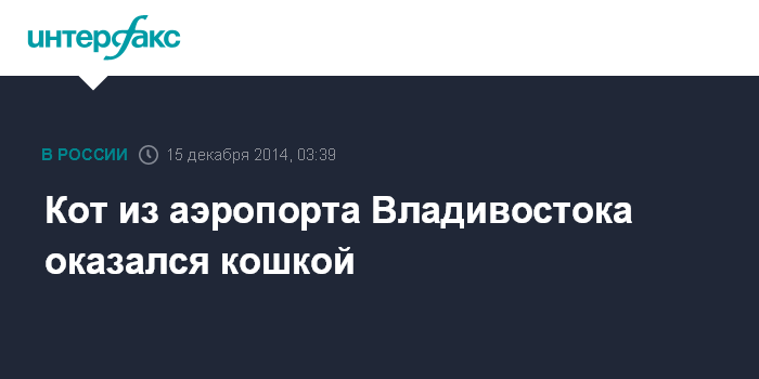 Кот из аэропорта Владивостока оказался кошкой