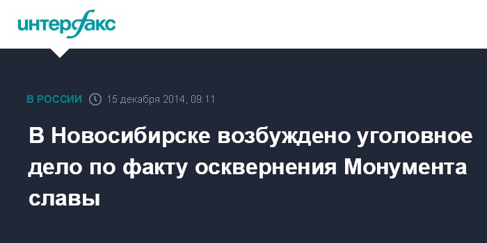В Новосибирске возбуждено уголовное дело по факту осквернения Монумента славы