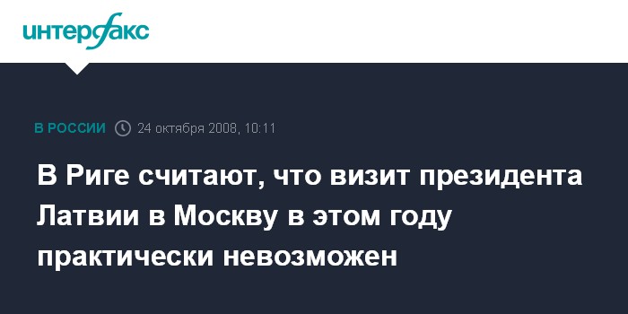 "Не могу дать ответа о сроках, когда этот визит был бы возможен. Мне очень трудно представить, что визит мог бы состояться уже в этом году", - сказал М.Риекстиньш журналистам после встречи с министром иностранных дел России Лавровым, сообщает агентство BNS.