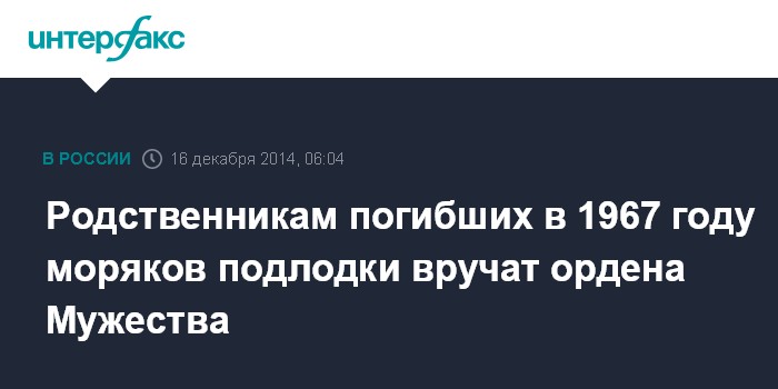 Родственникам погибших в 1967 году моряков подлодки вручат ордена Мужества