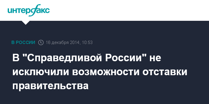 Москва. 16 декабря. INTERFAX.RU - В руководстве фракции "Справедливая Россия" ожидают скорую отставку правительства и предлагают провести внеочередное заседание Госдумы с участием кабинета министров.