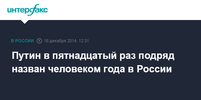 Путин в пятнадцатый раз подряд назван человеком года в России