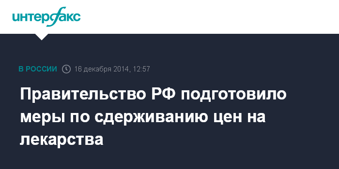 Москва. 16 декабря. INTERFAX.RU - Правительство РФ готово к концу декабря объявить о срочных мерах, направленных на сдерживание роста розничных цен в аптеках.