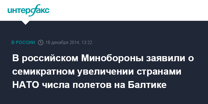 В российском Минобороны заявили о семикратном увеличении странами НАТО числа полетов на Балтике