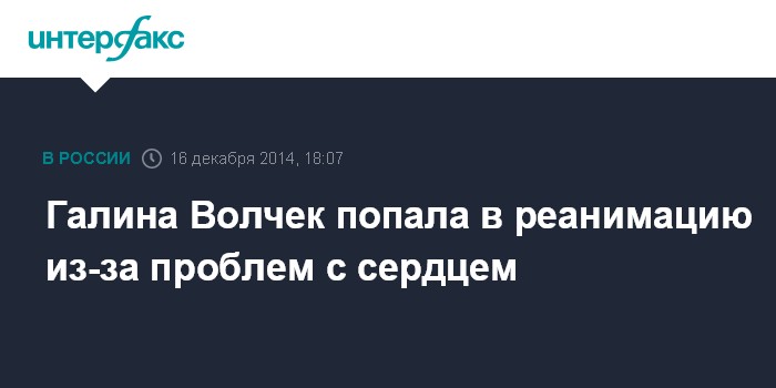 Москва. 16 декабря. INTERFAX.RU - Художественный руководитель московского театра "Современник" Галина Волчек доставлена в реанимацию из-за проблем с сердцем. Об этом "Интерфаксу" сообщил источник, близкий к руководству театра "Современник".