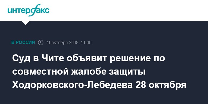 Суд в Чите объявит решение по совместной жалобе защиты Ходорковского-Лебедева 28 октября