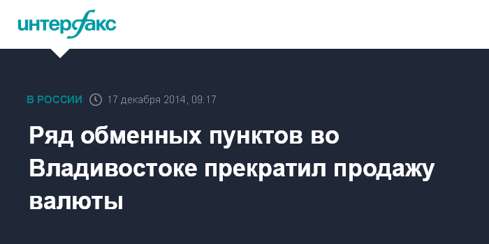 Москва. 17 декабря. INTERFAX.RU – Ряд обменных пунктов во Владивостоке в среду прекратил продажу валюты, продаж евро за 100 рублей и больше не отмечено, сообщил корреспондент "Интерфакса".