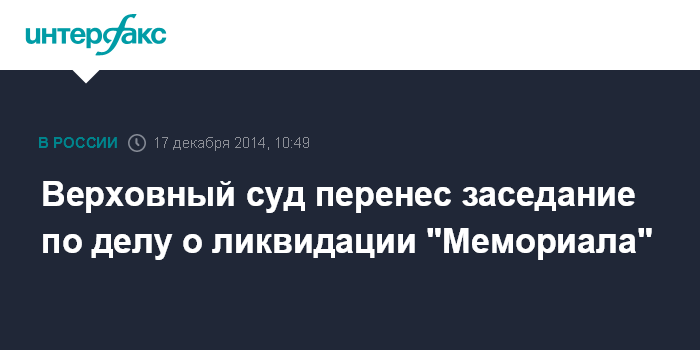 Москва. 17 декабря. INTERFAX.RU - Верховный суд перенес на 28 января рассмотрение иска Минюста о ликвидации правозащитного общества "Мемориал", передает корреспондент "Интерфакса" в среду.