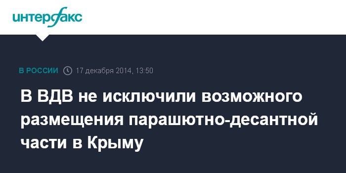 Москва. 17 декабря. INTERFAX.RU - Командующий ВДВ РФ генерал-полковник Владимир Шаманов не исключил возможности дислокации в Крыму парашютно-десантной части.