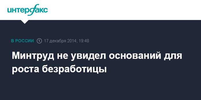 Москва. 17 декабря. INTERFAX.RU -Сложная экономическая ситуация и слабый рубль не дают основания считать, что в РФ ожидается рост безработицы, сообщила заместитель министра труда и социальной защиты России Татьяна Блинова.