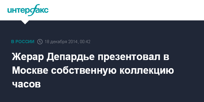 Москва. 18 декабря. INTERFAX.RU - Французский актер с российским гражданством Жерар Депардье в среду презентовал собственную коллекцию часов "Горжусь быть русским", сообщил телеканал "Россия 24".