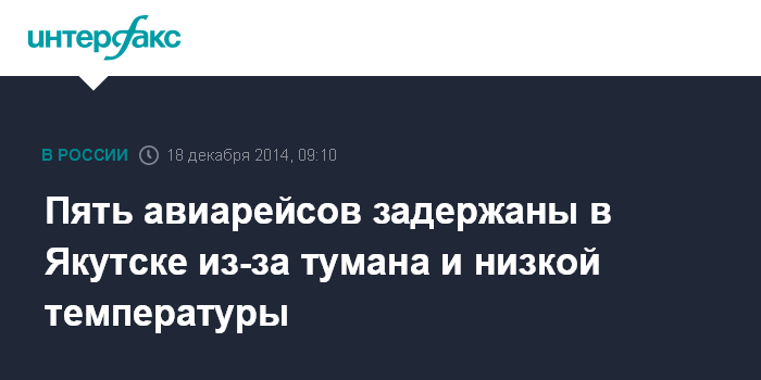 Москва. 18 декабря. INTERFAX.RU - Пять самолетов, среди которых два рейса в Москву, не смогли вылететь из аэропорта Якутска из-за густого тумана и низких температур, сообщила в четверг пресс-служба аэропорта.