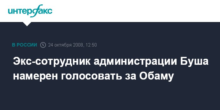 Экс-сотрудник администрации Буша намерен голосовать за Обаму
