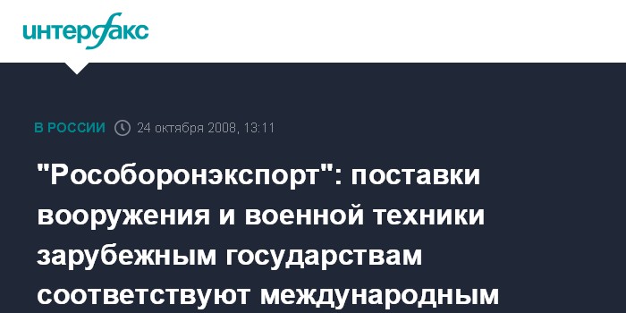 "Рособоронэкспорт": поставки вооружения и военной техники зарубежным государствам соответствуют международным нормам