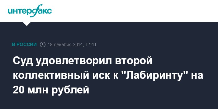 Суд удовлетворил второй коллективный иск к "Лабиринту" на 20 млн рублей