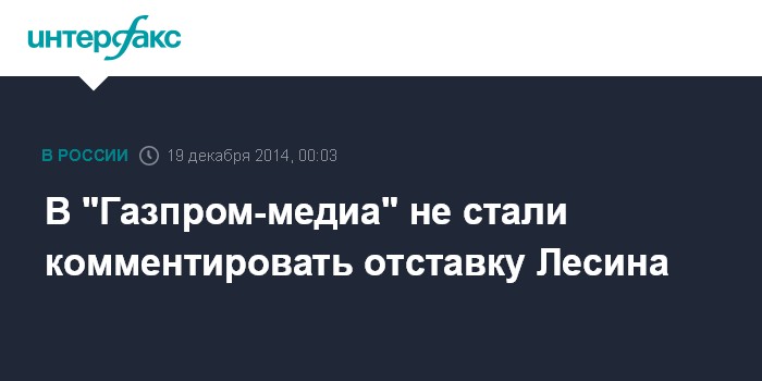 Москва. 19 декабря. INTERFAX.RU - Пресс-служба "Газпром-Медиа" не комментирует информацию о возможной отставке председателя правления холдинга Михаила Лесина.