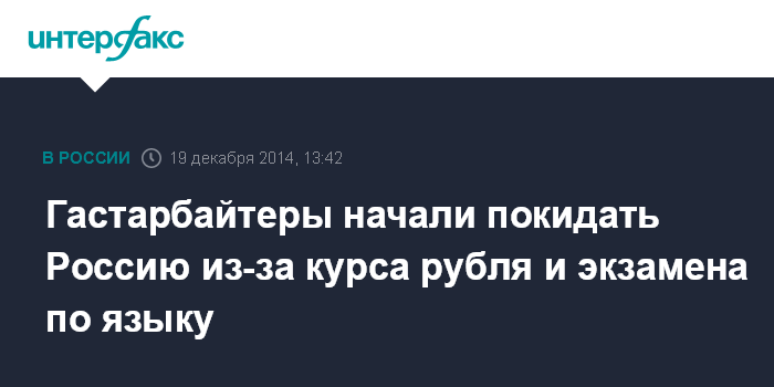 Москва. 19 декабря. INTERFAX.RU - Трудовые мигранты массово покидают Россию из-за ослабления рубля и закона, который обязывает их проходить платный тест на знание русского языка.