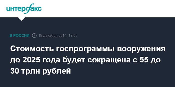 Стоимость госпрограммы вооружения до 2025 года будет сокращена с 55 до 30 трлн рублей