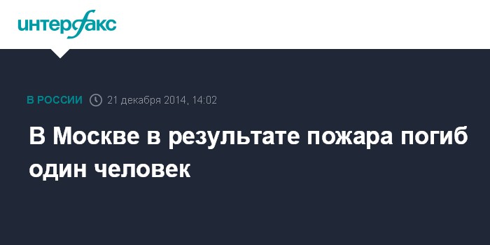 Москва. 21 декабря. INTERFAX.RU - Один человек погиб и один пострадал в результате пожара в квартире на юге Москвы, сообщил "Интерфаксу" источник в экстренных службах города.