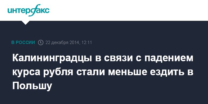 Как сообщает Польский культурно-деловой центр в Калининграде, падение курса рубля привело к значительному снижению числа россиян, приезжающих в страну. Если в начале года в приграничных районах Польши наблюдалось настоящее паломничество жителей Калининградской области, приезжавших в магазины продуктов и электроники, то сегодня отмечается резкий спад пересечений границы. По данным на середину декабря в Польшу приехали примерно 50 тысяч россиян - 106 тысяч пересечений в обе стороны. В прошлом году в декабре было зафиксировано 345 тысяч пересечений.