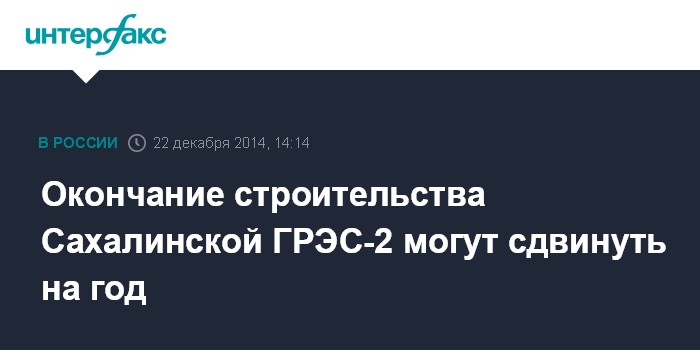 При этом замминистра энергетики РФ Вячеслав Кравченко отметил, что "в настоящее время не подлежит сомнению перенос окончания сроков строительства Сахалинской ГРЭС-2 в лучшем случае на 2017 год" (ранее предполагался запуск первой очереди в 2016 году - ИФ).